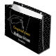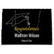 En kontur av ett student-tak ligger överst. Under hatten finns en mall på den här svarta, vita och faux guld-presentsäcken. Med mallen kan du redigera visningen. Ni kan ändra på budskapet, året som student tar examen och student namn. Guld-skriptet Faux (inte folie) utgör meddelandet. (Visa: Grattisar) Vit visning finns tillgänglig för student namn och det år då student tar sin examen. (Visat: Klass 2025) Ett mönster i vit text för det år student tar examen finns också på sidorna av presentsäcken.