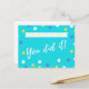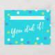 Ljusblå bakgrund med limegröna, blå och vita prickar konfetti
