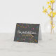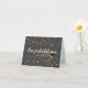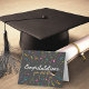 Fira dina nära personers prestationer med detta stilrena och minimalistiska examenskort. Med en snygg mörk bakgrund prydd med färgglada konfetti och serpentiner är detta kort perfekt för alla nyutexaminerade. De djärva vita och gyllene bokstäverna, tillsammans med en charmig illustration av en examensmössa, tillför en touch av sofistikering och glädje. Dessutom kan du anpassa bakgrundsfärgen till din valda färg, vilket gör det till en verkligt unik souvenir. Oavsett om det är för gymnasiet, universitetet eller någon annan examen, kommer detta kort säkert att göra deras dag extra speciell.