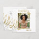 Elegant guld vit Grattis examen blad Fotokort med en examen namn och ett foto. Examen kort med en vacker gyllene bladverk, text Grattis, ett namn och ett foto av examen på framsidan - anpassa med ditt namn och ditt foto. Anpassa texten på baksidan av kortet eller radera den.