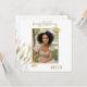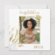 Elegant guld vit Grattis examen blad Foto Kort med en examen namn och ett foto. Examen kort med vacker gyllene blad, text Grattis, ett namn och ett foto av examen på framsidan - anpassa med ditt namn och ditt foto. Anpassa texten på baksidan kortet eller radera den.