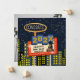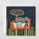 Designen har roliga illustrationer av stadsbyggnader under en stjärnklar natt.