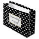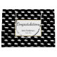 Denna svarta och vita examenspresent har svart text som du kan ändra för att visa ett personligt meddelande. (Visad: Grattis) Ytterligare text är för att anpassa examenspresentväskan med examenstagens namn och det år studenten tar examen. Texten är placerad inuti en scallopad form. Den svarta presentväskan har ett mönster av examenshattar.