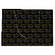 Denna examenspresentpåse är svart. Grattis står i ett elegant guldfont. Två rader med vit text visas under skriften. Du kan redigera texten för att visa examenklassens namn och det år studenten examineras. Texten bildar ett mönster på presentpåsen. All text kan redigeras eller raderas efter önskemål.