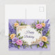 Grattis födelsedag färgglösa blommor på lavendel vykort