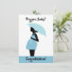 Preggers, Becky? (Byt namn till kostym till din person.) Skrivna i modern svart stil med blå och svart gravid dam illustration. Grattisar! i samma moderna svarta teckensnitt på en matchande blå bakgrund.