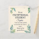 Fira ett verkligt exceptionellt student med detta kort för grattisar i eleganten, designat för lärare, skolor och stolta föräldrar som vill hedra akademiska landvinningar på ett meningsfullt sätt. Det här kortet har en mjuk bakgrund för parchment-stil med vattenfärgsaccenter för löv och guld, och ger ett hjärtskärpt budskap: "Till ett EXCEPTIONELLT STUDENT - Ditt hårda arbete, din tillväxt och din positiva inställning har fått effekt. Behålla upp den underbara ansträngningen." 🎓 Lägg till student:s namn för att skapa en personlig keepy som de kommer att uppskatta. Vare sig det gäller studenten, utmärkelser vid årets slut eller klassrumserkännande är detta kort perfekten att säga "jag ser er insats, och jag är stolt." Utformningen är idealisk för tonåring pojkar och flickor, och namn fält är fullt redigerbart för kostym oavsett student eller tillfälle.