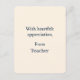 Fira ett verkligt exceptionellt student med detta kort för grattisar i eleganten, designat för lärare, skolor och stolta föräldrar som vill hedra akademiska landvinningar på ett meningsfullt sätt. Det här kortet har en mjuk bakgrund för parchment-stil med vattenfärgsaccenter för löv och guld, och ger ett hjärtskärpt budskap: "Till ett EXCEPTIONELLT STUDENT - Ditt hårda arbete, din tillväxt och din positiva inställning har fått effekt. Behålla upp den underbara ansträngningen." 🎓 Lägg till student:s namn för att skapa en personlig keepy som de kommer att uppskatta. Vare sig det gäller studenten, utmärkelser vid årets slut eller klassrumserkännande är detta kort perfekten att säga "jag ser er insats, och jag är stolt." Utformningen är idealisk för tonåring pojkar och flickor, och namn fält är fullt redigerbart för kostym oavsett student eller tillfälle.