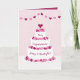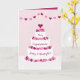 Kort för grattisar i personlig med buntning och en traditionell vit 3-skiktad bröllop-kaka som är täckt av petaler för rosa och lila. Bakgrunden har en rosa- och snöre-design. Perfekt för landsbyggsbröllop och fläkt för bakning. Namn i make och hustru som visas, liksom insiderbudskapet, kan anpassas.