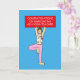 Ett paketerakvinnaanseende i en yoga poserar, stundinnehav ovanför henne huvudet som ett rött undertecknar att något att säga grattis på att avlägga examen som en yogalärare".