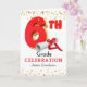 För honom, Grattisar på 6e Klass Firande studenten, pappert hälsningskort. En stor 6e-ballong i rött och guld med studenten-diplom och guld-stjärnor. Anpassa genom att lägga till en namn i omslaget. Art, bild och versell copyright © Shoaff Ballanger Studios, 2025.