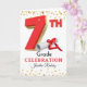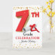 För henne, Grattisar vid 7:e Klass Firande studenten, pappert hälsningskort. En stor 7:e-ballong i rött och guld med studenten-diplom och guld-stjärnor. Anpassa genom att lägga till en namn i omslaget. Art, bild och versell copyright © Shoaff Ballanger Studios, 2025.
