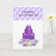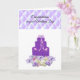 En söt lila designer-kaka i bröllop med detaljer om söt blommor och trädgårdsblommor runt basen som tillför en fin accent. Gräns av lila diamantutseende. Anpassa meddelandet efter behov.