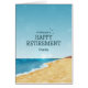 Grattis kort för pension med solig strand och hav.