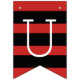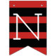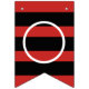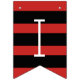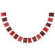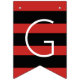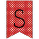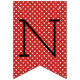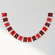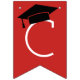 Stilfull studentfirande girlang banner med "Grattis!" med studentmössa, rand och prickmönsterdetaljer. Svart, vit och röd (kan anpassas till skolans färger) färgschema.