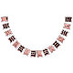 Stilren examensfestsgirlang dekorationsbanner med "Grattis!" och detaljer som examenshatt, randigt och prickigt mönster. Svart, vit och rosa guld färgschema.