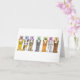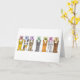 Tecknade katter som håller upp pastellfärgade kort med bokstäver som stavas 'Mrs och Mrs'.