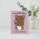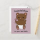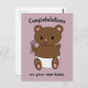 En bedårande björn bebis håller en rosa och lila skallra medan den bär en blöja. Texten säger "Grattis" och "till din nya bebis". Perfekt för de nya föräldrarna i ditt liv!