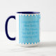 Grattis mugg för nytt förälder, baby temat ord sökspel mugg. Den blå bakgrunden och rand kan vara både personlig och grattis. Text kan också tas bort.
