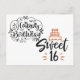 Ett sött födelsedags-kort för 16-åring. Utfört i skrivstil med en tårta på framsidan.