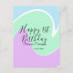 Grattis på 1-årsdagen rosa grön blå akrilgjutning vykort