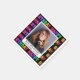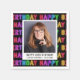Fira hennes 40-årsdag i stil med dessa färgglada födelsedagsservetter med orden "Grattis på födelsedagen" i regnbågsfärgade retro neonskrift på svart bakgrund. Personalisera dem med ett favoritfoto, tillsammans med hedersgästens namn och datum.