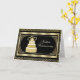 50-årsjubileum gratulationskort. Ett fantastiskt kort i svart och guld med guld tårta med hjärtan och utsmyckad ram.