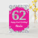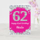Grattis på 62-årsdagen Hot Pink och Silver Glitter Kort