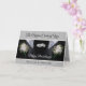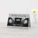 Två svarta smokingar med vita nejlikor representerar de två brudgummarna som har bröllopsdag. Kombinerat med en silverfärgad paisley-kant och anpassad text på framsidan av kortet och på insidan.