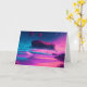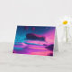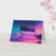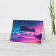 Årsdagskort. Rosa, blå och lila havsvågor tropisk ö med palmer fantasidigital konst.