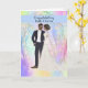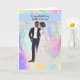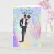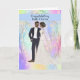 Grattis på bröllop till ett svart par med en illustrerad brud och brudgum på en mjukfärgad designerbakgrund. Tack till Design Cuts för några av elementen i designen. Orden på framsidan av kortet är permanenta, men insidan kan ändras efter önskemål.