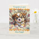 En söt ny husdjurskort för någon som har fått en ny valp! En söt liten hund som kramar en filt med ett trevligt meddelande inuti med små tassavtryck.