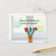 Grattis på ditt nya hem! Den här vackra, enkla buketten med tulpanor framhäver skönheten i en enkel vit fönsterbräda på dessa snygga inflyttningskort för ett fastighetsbolag eller fastighetsmäklare. Titelbolag eller låneansvariga kanske också vill skicka ut dessa meddelanden som ett tack till sin klient eller husköpare. Söta tack-kort för fastighetsmäklare.