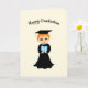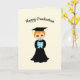 Grattis på examen-kort med en söt doktorand på gul bakgrund. All text kan anpassas!