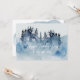 En blå bergig scen med sjö i förgrunden.