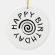 En attraktiv grattis på födelsedagen-ornament med cirkulär text och ett spiral-motiv.