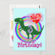 Grattis på födelsedagen 3 års T-Rex Dino-vykort. En söt grönt grattis på födelsedagen dinosaur Tyrannosaurus Rex med stort 3 och regnbåge färg och ett rött hjärta som säger "I kärlek Dinosaurs" vykort. Det här T-Rex-vykortet är helt anpassade! Ändra ålder och lägg till bilder och/eller text(er)! En dinosauer T-Rex från grattis på födelsedagen som ska skicka till en liten dino fläkt eller använda till din coola-dino-födelsedagsfest!