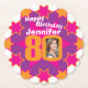 80:e födelsedagsfesten pappra underlägg. Underbart att lägga till en personlig beröring till en 80:e överraskande födelsedagsfest. Anpassa med din födelsedagsflickefoto på 0 av 80 och anpassa dig efter ditt val av namn. Design av Sarah Trett.