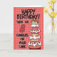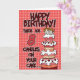 Ett specifikt födelsedagkort för rolig ålder som presenterar en stor b-dag tårta på en plädbakgrund för att överföra till dina vänner, familj och älskade!