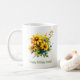 Det är ett kaffe mugg med vackert gula blommor, speciellt designat att önska Amelia ett grattis på födelsedagen. Det handlar inte bara om att äta kaffe, det handlar om de bra vibes som skickas hela dagen.