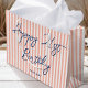 Höj din gåva ge med en egen namnpresentväska! Den här chicen har snyggt-skripttypografi och ett enkelt stripe-mönster med faux linen-utseende. Anpassa mallen med mottagarens namn och ålder - perfekt för födelsedagar för milstolpe inklusive 18, 21, 30, 40, 50, 60, 70, 80, 90:e och 100! Den här eleganten blandar tidlös stil med en modern tvist, och texten kan lätt anpassas efter årsdagar, helgdagar eller särskilda händelser. Tillverkad med papper förstklassig kvalitet och tillgänglig med en projektionsyta eller glansig avsluta. Tryckt färg: mörk blått, marin, naturlig korall, persikofärgad rosa och vit.