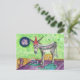 Jag bor på en ö där åsnorna strövar fritt. De är lite tama efter att ha varit i kontakt med turister, men är fortfarande lite vilda! Jag har målat bilder av åsnor i många år efter att ha bott i Karibien periodvis i 15 år. Alla som har åsnor kommer att njuta av det här kortet, eftersom de förstår att åsnor inte gillar att vara ensamma, de klarar sig bättre i par. Det här födelsedagskortet är fantasifullt eftersom åsnan sitter på bordet och äter kakan, beter sig busigt precis som åsnor gör. Klockan är som den är eftersom tiden är relativ och vi borde bara njuta av vår ålder som vi har för det finns inget val!