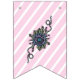 Söt blommor från Ballerina Shoes-samlingen på Bunting Flaggor för att ange "Grattis på födelsedagen". Rosa och vit rand-bakgrund kompletterar ensembeln.