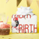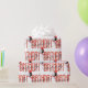 Contemporary Grattis på födelsedagen text om vitt med party-ballonger och guld konetti. Bakgrunden till färg kan ändras.