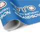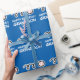 Blå eller anpassad bakgrundsfärg. Lägg till eget namn och färg.