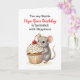Ett underbart födelsedagskort till en bästa vän med en illustration av en söt liten mus som bär en vaniljkuppkaka med strössel och en körsbär på toppen! All text på detta kort kan redigeras i det anpassade området.