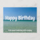 Det här vackra vykortet med glad födelsedag-stranden är specialdesignat med ditt kustnära företagsnamn ovanför de vackra havsvågorna. Storslagna födelsedagsvykort för företag vid havet för marknadsföring till tidigare kunder och nuvarande företagsmedarbetare. Modern vit text över kusthorisonten. Personlig blå text på baksidan.