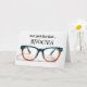 Roligt ögonglasögon med suddig Grattis på födelsedagen-text i bifoner på vit bakgrund. Inre text kan ändras.