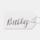 Den här moderna och elegant presenttexten i märkrn har svart Grattis på födelsedagen på framsidan och på baksidan anpassar du den med ditt namn eller med din familj namn. Bakgrunden är i vit färg.