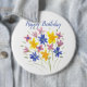 Grattis på födelsedagen med vattenfärgblommor på en stift.